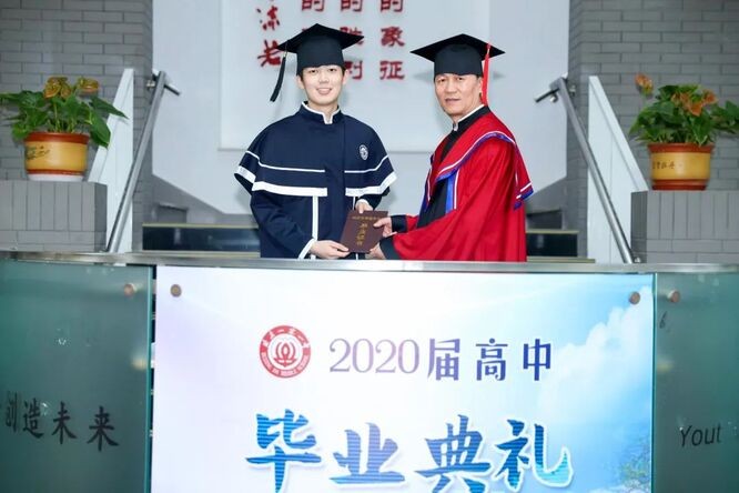 高三同学们穿上学子毕业礼服,陆校长身着校长礼服,亲自为每一位同学颁发了毕业证书,并与同学们亲切合影。这是我校第一次学生着毕业礼服获颁毕业证书。充满仪式感的证书授予流程,让同学们真实地感受到了高中毕业带来的成长意义和责任感。